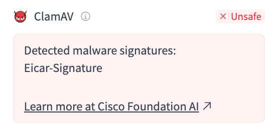 As part of our partnership with Hugging Face, Foundation AI operates custom-fit signatures that detect deserialization risks in common model file formats such as .pt and .pkl, in addition to scanning for traditional malware.